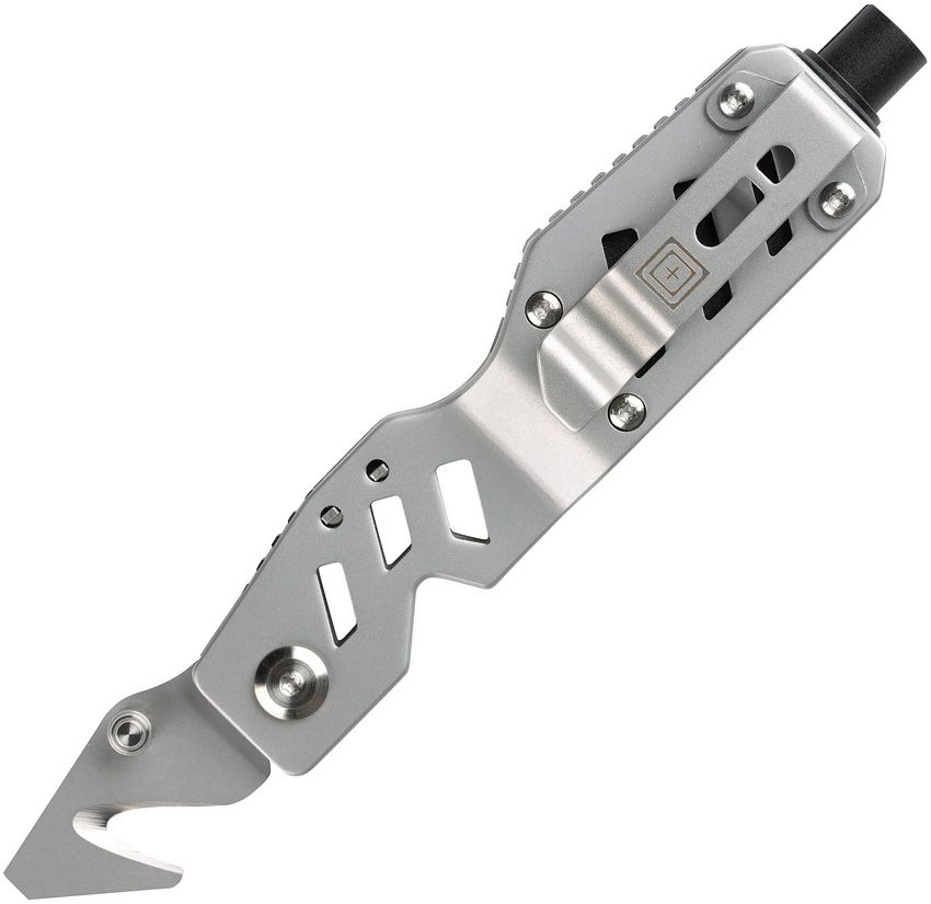 4.25" closed. Stainless handle. Tools include: Glass breaker l Belt/cord cutter l Pry bar l...