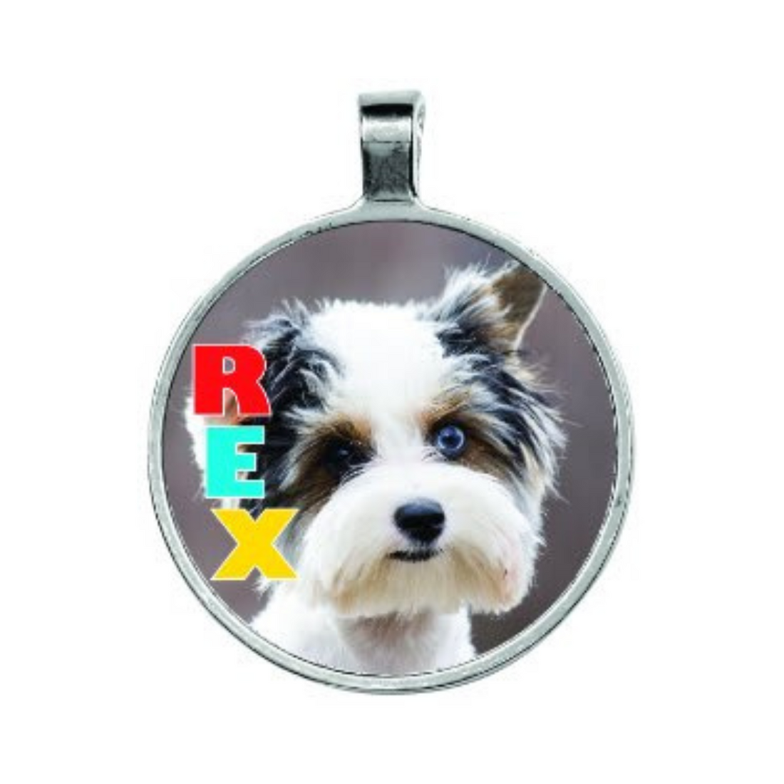 1" Silver Laserable Anodized Aluminum Round Pet Tag with Tab