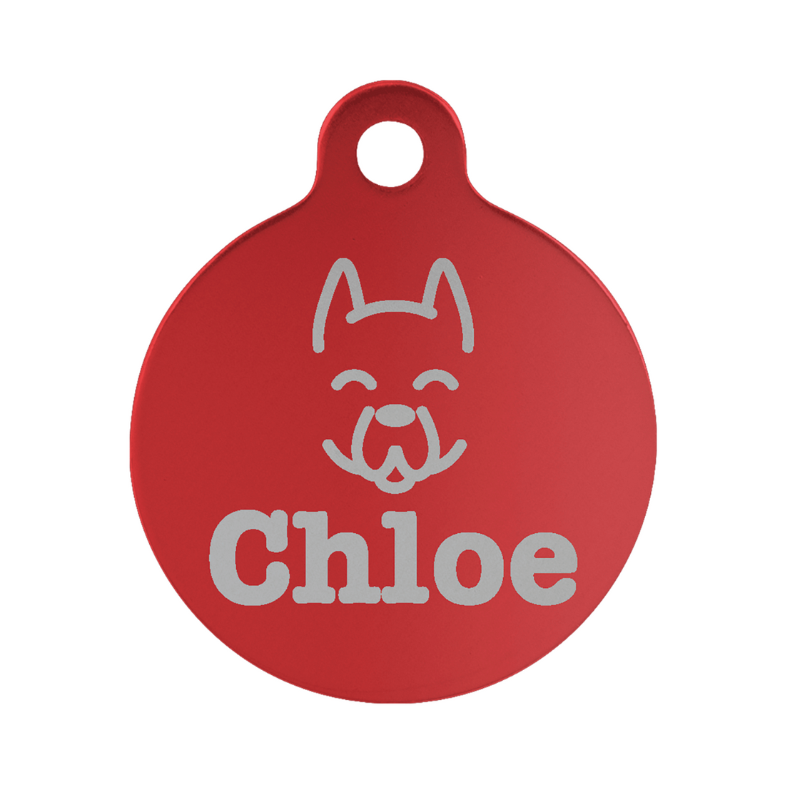 1" Red Laserable Anodized Aluminum Round Pet Tag with Tab