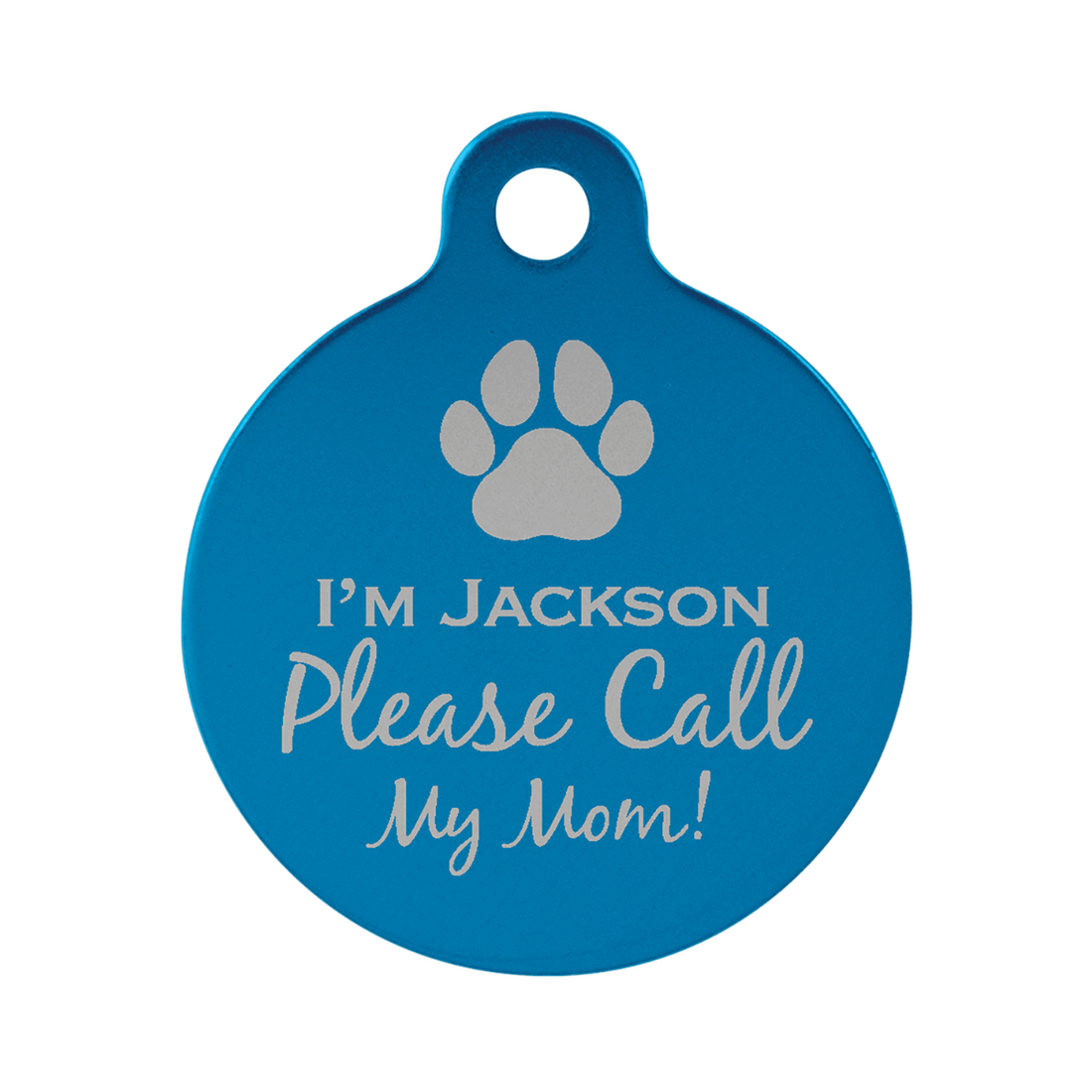 1" Blue Laserable Anodized Aluminum Round Pet Tag with Tab
