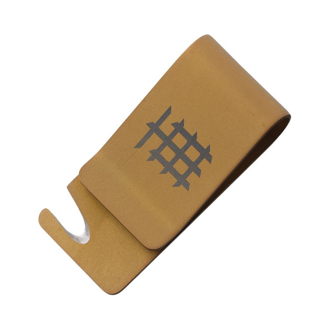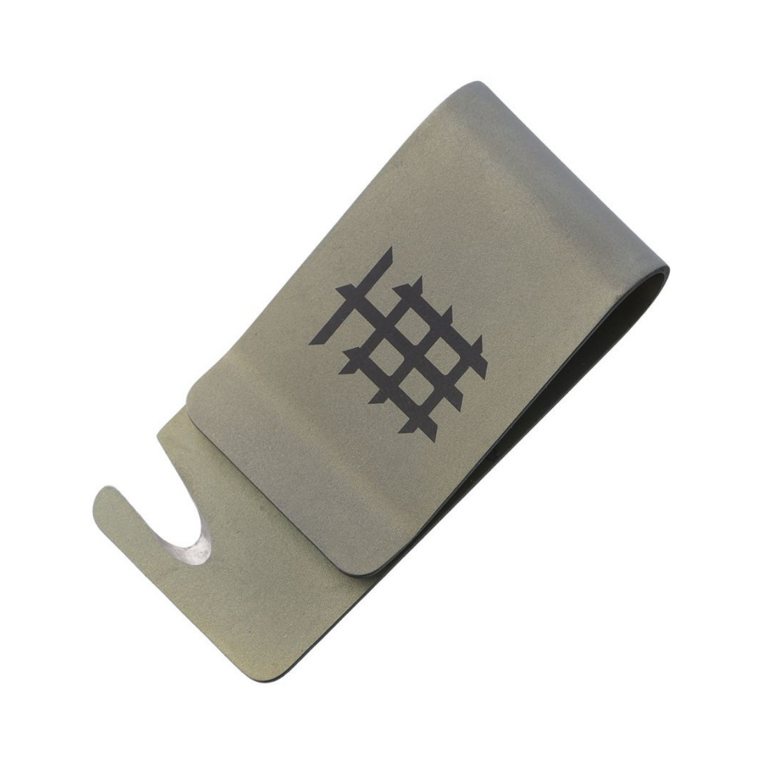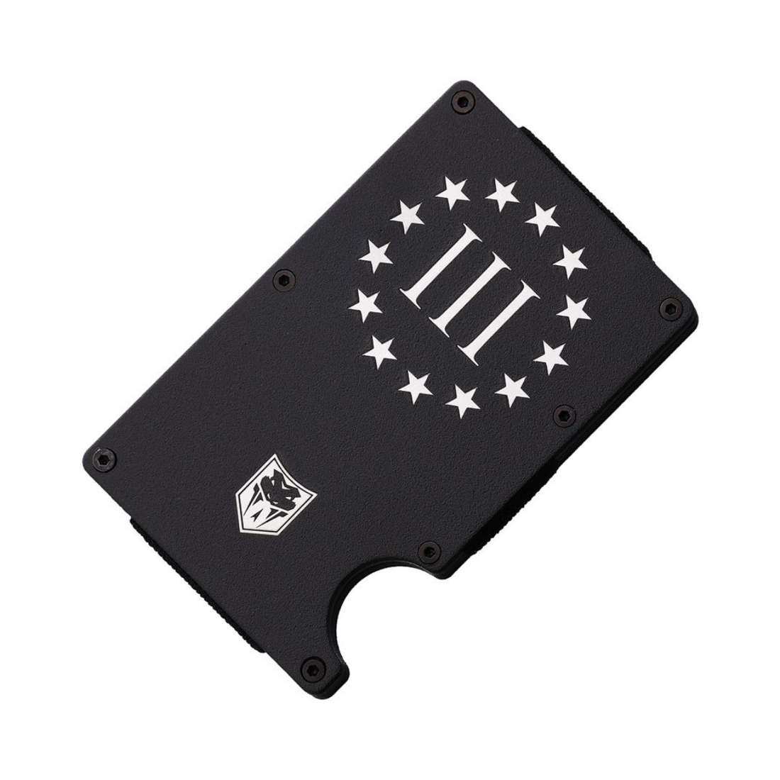 Dimensions: 3.5" x 2.25" x 0.25". Money clip. 3 Percent artwork. Aluminum construction. Color: Black....