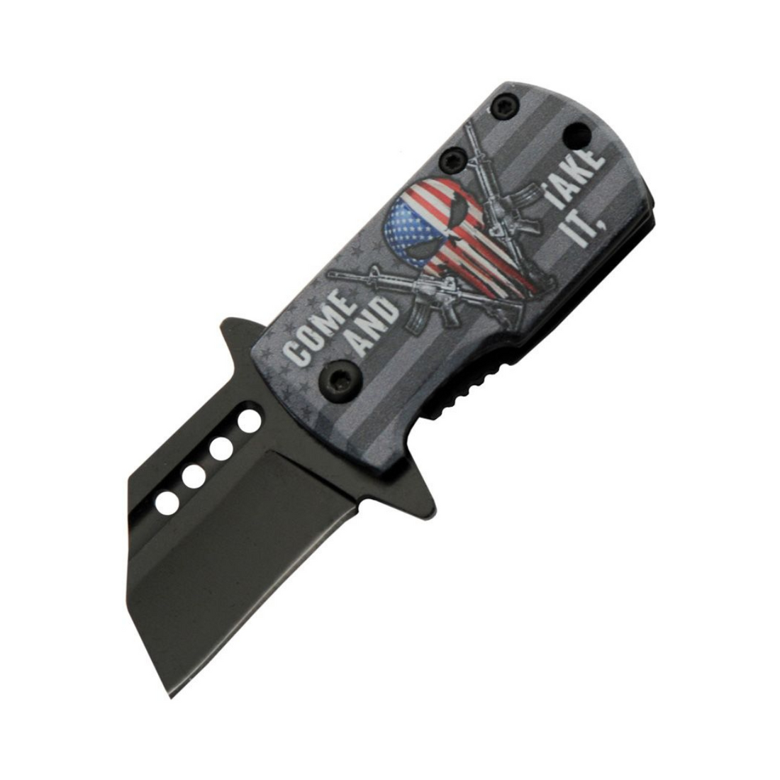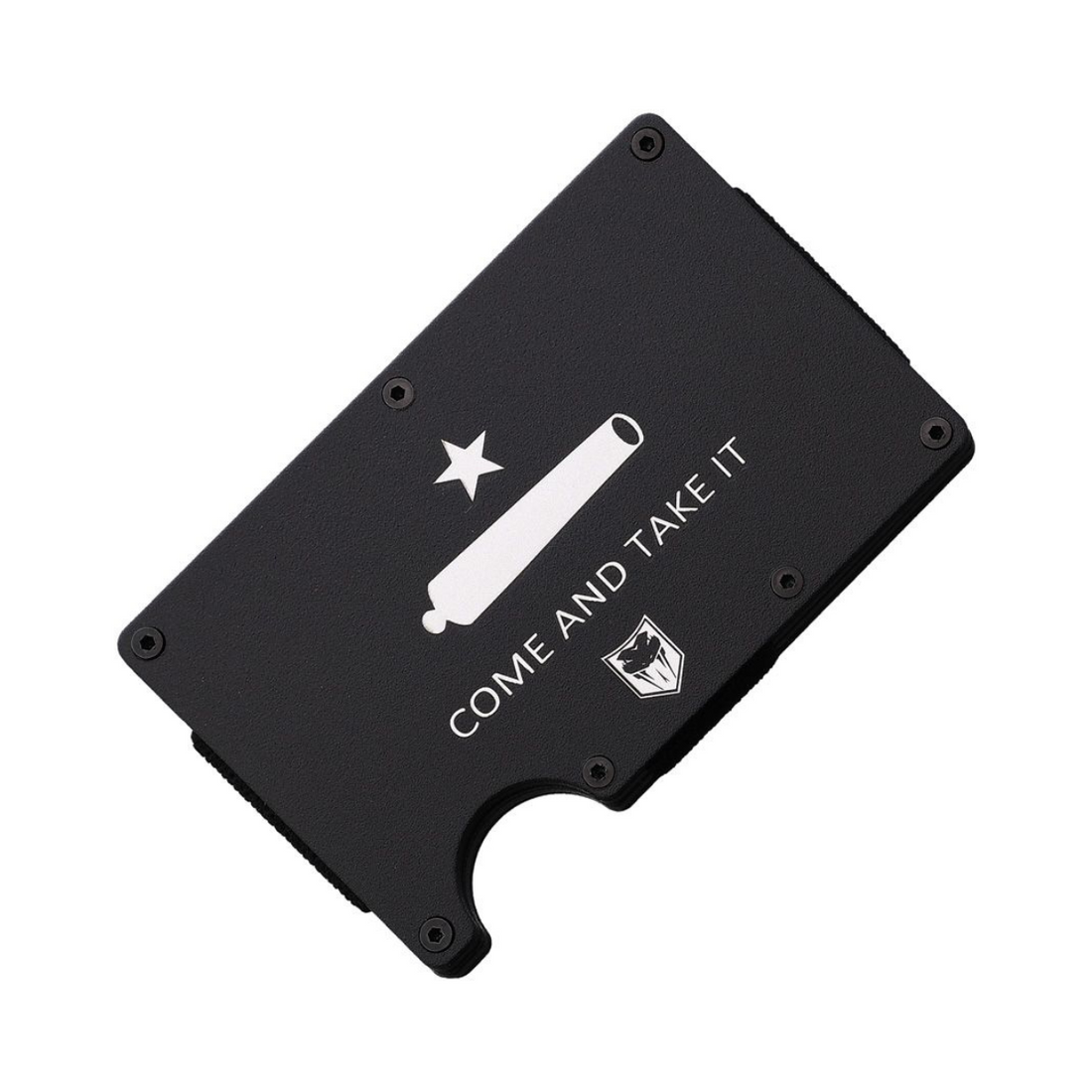 Dimensions: 3.5" x 2.25" x 0.25". Money clip. Come and Take It artwork. Aluminum construction....