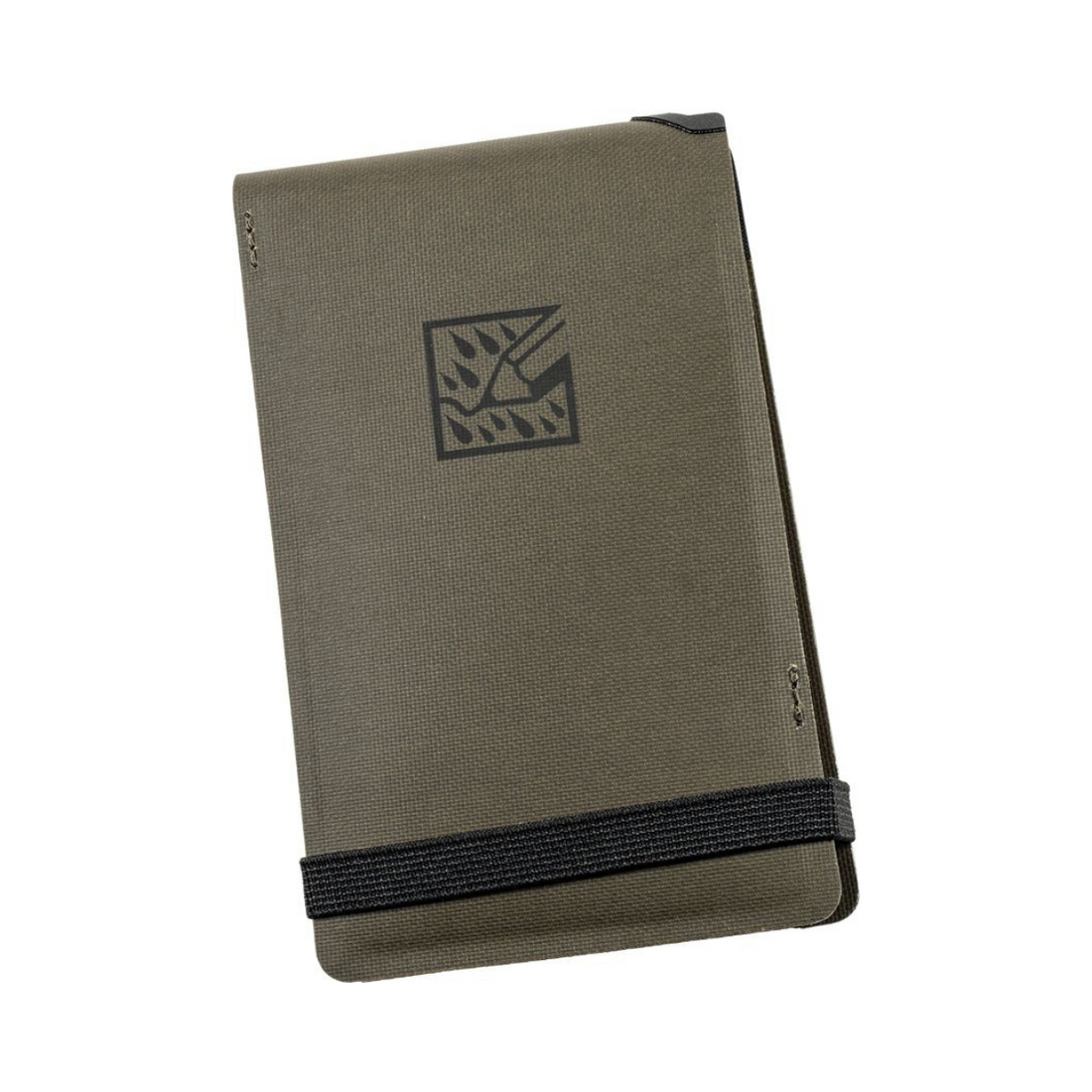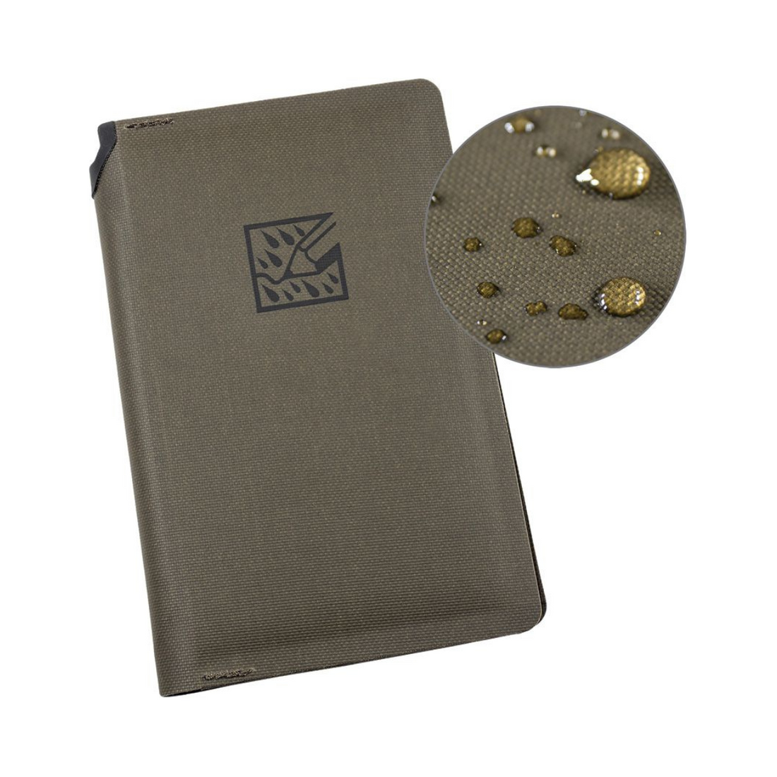 Dimensions: 5.25" x 3.5" x 0.5". Olive and black rugged TPU cover with elastic closure....