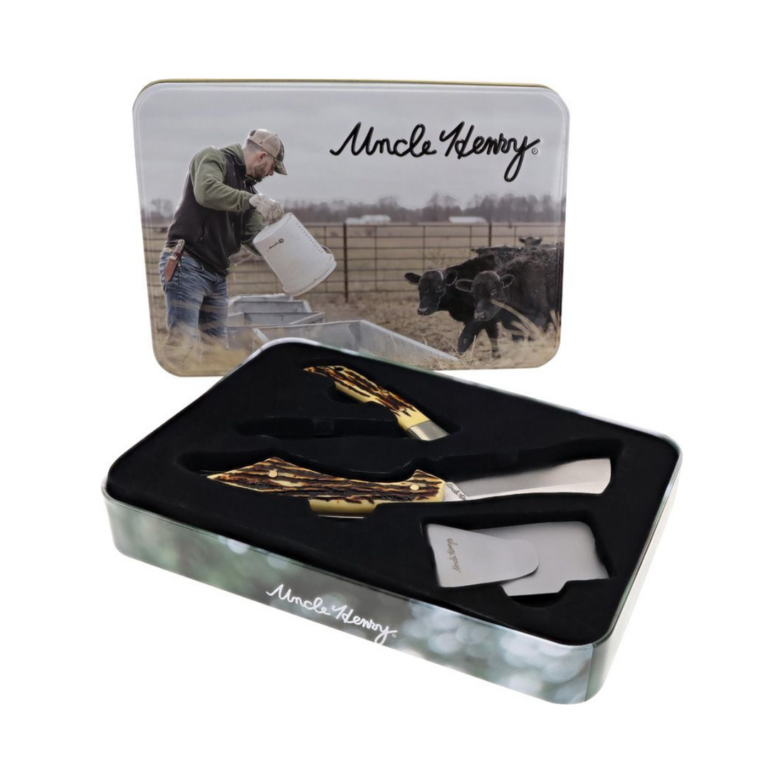 Satin finish stainless blade. Staglon handle. Includes: 7" overall fixed blade with 3" blade; 3.5"...