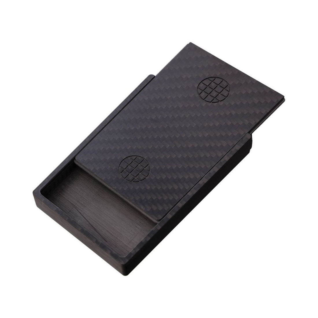 Dimensions: 2.35" x 3.65" x 0.32". Black anodized finish aircraft grade aluminum body. Titanium hardware....