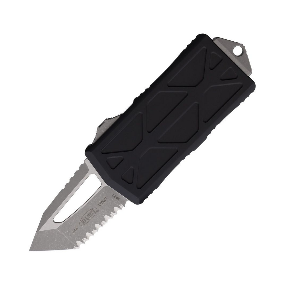 Automatic opening. 3.63" (9.22cm) closed. 1.94" (4.93cm) stonewash finish serrated premium steel tanto blade. Black...