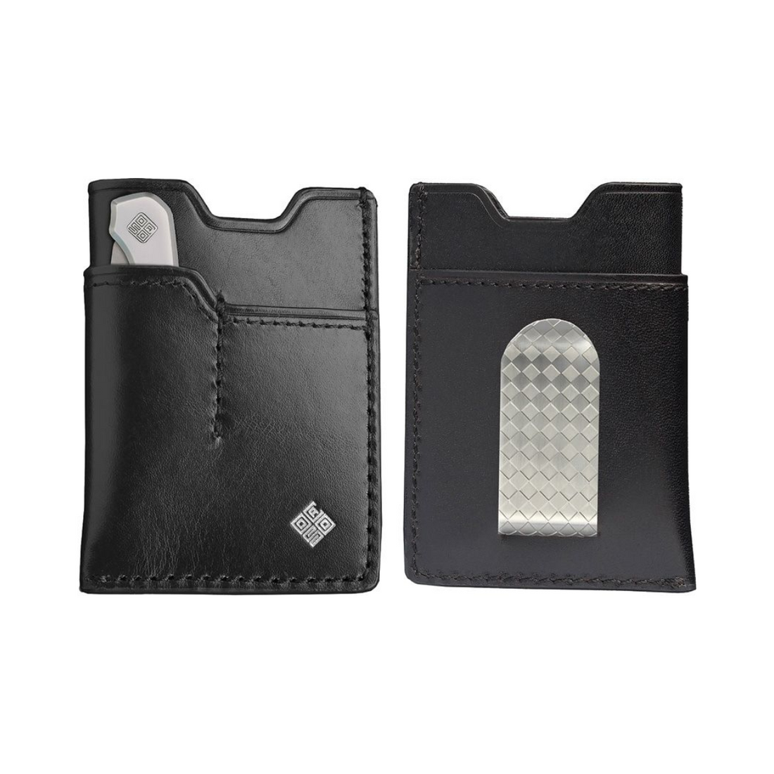 Dimensions: 2.75" x 4". Money clip. Holds small pocket knife 3.5" x 0.82" or smaller....