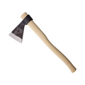 18.25" overall. 7" natural finish spring steel axe head with 3.75" cutting edge. Wood handle. 500g axe head. Bulk packed.