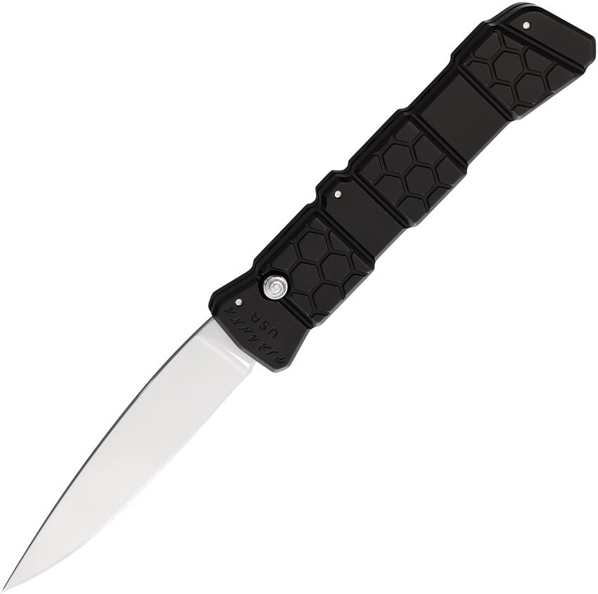Automatic opening. 4.25" (10.8cm) closed. 3.5" (8.89cm) mirror finish CPM S30V stainless spear point blade. Black aluminum handle. Pocket clip. Boxed.