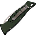 Automatic opening. 4.63" (11.76cm) closed. 3.25" (8.26cm) mirror finish 154CM stainless blade. Green aluminum handle. Lanyard hole. Pocket clip. Boxed.