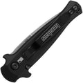 Automatic opening. 3.75" (9.53cm) closed. 2.5" (6.35cm) stonewash finish CPM-154 stainless blade. Black anodized aluminum handle with carbon fiber inlay. Pocket clip. Boxed.
