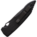 Automatic opening. 4.25" (10.8cm) closed. 3.5" (8.89cm) black oxide coated CPM S30V stainless spear point blade. Black aluminum handle. Pocket clip. Thumb pull. Boxed.