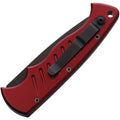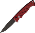 Automatic opening. 4.13" (10.49cm) closed. 3.25" (8.26cm) black oxide coated 154CM stainless blade. Red aluminum handle. Lanyard hole. Pocket clip. Boxed.