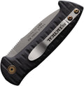 Automatic opening. 4.63" (11.76cm) closed. 3.25" (8.26cm) bead blast finish D2 tool steel blade. Black G10 handle. Pocket clip. Manual safety. Boxed.