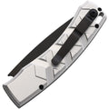 Automatic opening. 4.13" (10.49cm) closed. 3.25" (8.26cm) black oxide coated 154CM stainless blade. Silver aluminum handle. Lanyard hole. Pocket clip. Cross pattern milled handle. Boxed.