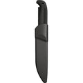 11.5" overall. 6" mirror finish 4116 stainless fillet blade. Black handle. Handle has Zy-Ex core with food-safe Kray-Ex exterior. Lanyard hole. Black molded plastic belt sheath.