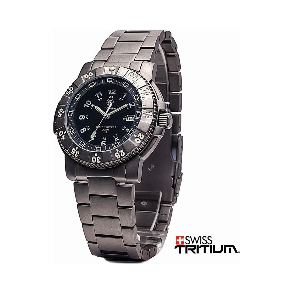 43mm. Water resistant to 200 meters. Scratch-resistant hardened mineral glass crystal. Quartz Swiss component movement with three hands to show hours, minutes, and seconds. Tritium light source. Boxed.