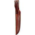 11" (27.94cm) overall. 6.5" (16.51cm) satin finish 440C stainless fillet blade. Brown wood handle. Full tang. Brown leather belt sheath. Boxed.