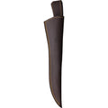 14.5" (36.83cm) overall. 9" (22.86cm) black finish stainless blade. Brown wood handle. Full, extended tang. Lanyard hole. Brown leather belt sheath. Boxed.