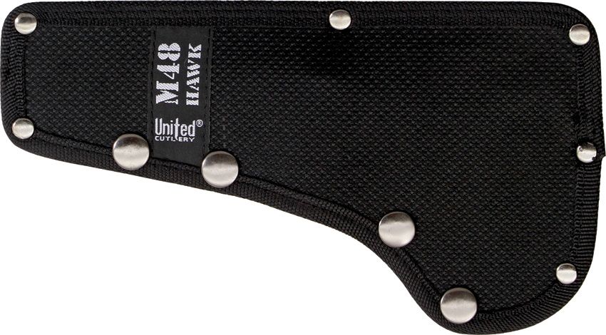 15 1/2" overall. 7 3/4" stainless black coated head with a 3 7/8" axe blade and a 2 5/8"(L) spike tip. Black grooved Kraton handle. Lanyard hole. Black nylon belt sheath with snap closure.