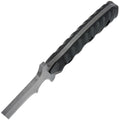 17 5/8" overall. 12 1/4" 420A stainless blade with titanium electroplated finish. Full tang. Black impact resistant composition handle. Lanyard hole. Black nylon MOLLE. compatible belt sheath with black cord lanyard.