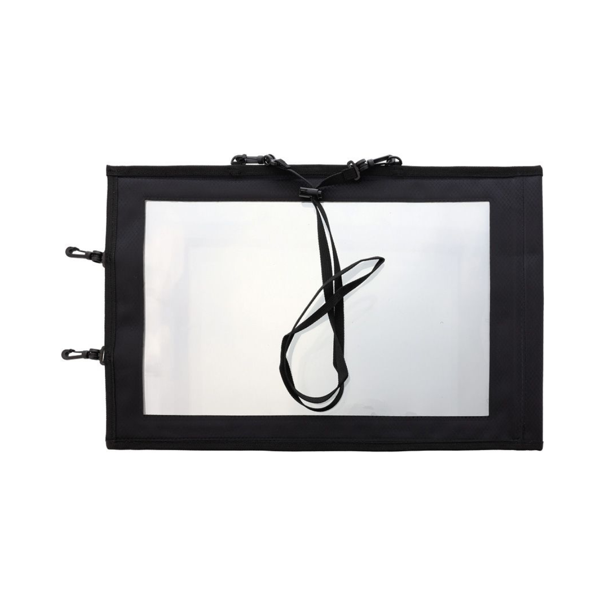 Dimensions: 18" x 11.75". Clear PVC window. Waterproof double zip lock seal. Removable straps and clips for carrying and attachment options. Nylon construction. Color: Black. Bulk packed.