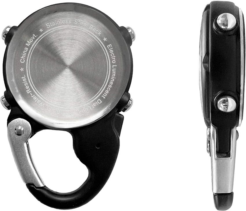 2.54" overall. High contrast LCD display. 100 ft water resistant. Alarm, chronograph, and timer functions. 12 and 24 hour time. Digital backlight. Color: Black. Boxed.