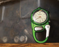 2.54" overall. High contrast LCD display. 100 ft water resistant. Alarm, chronograph, and timer functions. 12 and 24 hour time. Digital backlight. Color: Green. Boxed.