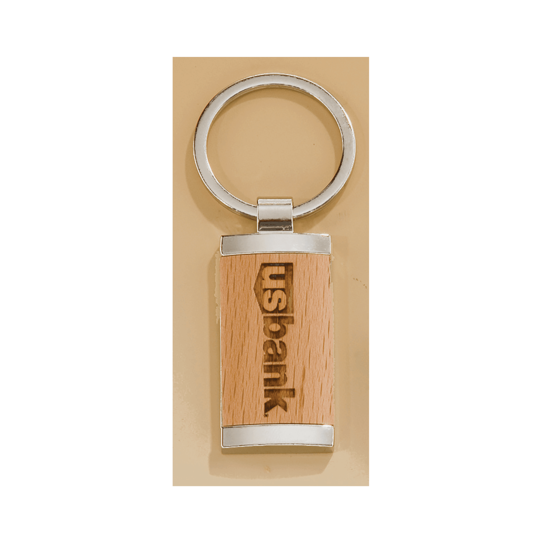 7/8" x 1 1/4" Rectangle Silver Key Ring with Maplewood Insert